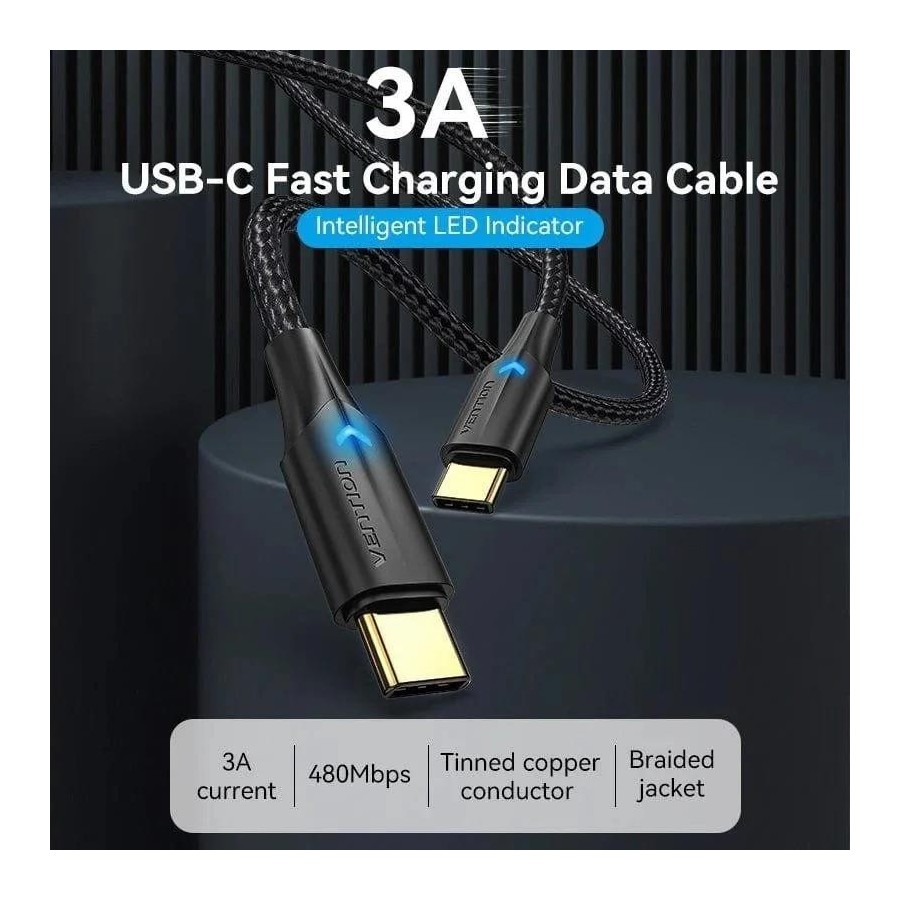CABLE USB 2.0 VENTION TIPO USB-C/M-C/M LED 480MBPS 3A 0.5M BLACK